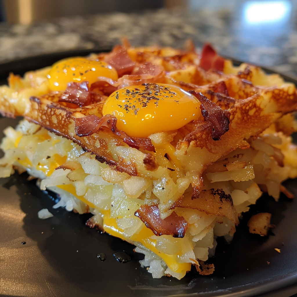 For a crispy twist on your classic hash browns, grate potatoes and mix them with a little salt, pepper, and olive oil. Place the mixture in the waffle iron and cook until golden and crispy. These waffle iron hash browns are a perfect side dish for breakfast or brunch.