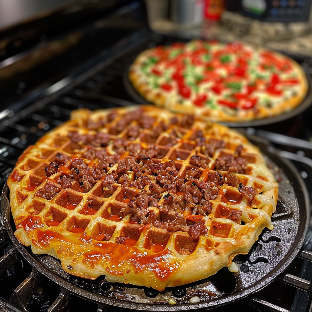 Instead of making traditional pizza dough, you can use store-bought pizza dough to make mini pizzas in your waffle iron. Top the dough with sauce, cheese, and your favorite toppings, then cook until the dough is crispy and the cheese is melted.
